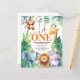 A smaller 4.5 x 5.6” budget price alternative, on 110gsm semi gloss which is similar in thickness to a postcard. There is ONE per sheet. Budget Wild One Cute Jungle Animals 1st Birthday Party. Sweet safari animals and forest greenery for your little one's first birthday celebration! Wild is in a fixed stylish script and the rest of the text can be easily personalised to your own details. On the back, a couple more jungle cutees and balloons.