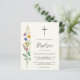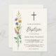 This budget Baptism invitation is decorated with wildflowers and a cross on a soft cream background.