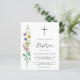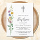 This budget Baptism invitation is decorated with wildflowers and a cross.