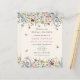 This is a delicate and budget friendly bridal shower invitation. The design features a colorful and bohemian field of summery wildflower florals in pretty shades of blue, terracotta, pink, purple and yellow. The butterflies and bees add the finishing whimsical and elegant touch.
