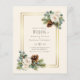Beautiful white Roses, Eucalyptus leaves, rustic pine cones, and a gold frame feature on this winter wedding item which is part of a larger collection that includes budget wedding invitations, save the dates, RSVPs, labels, gifts, stationery, and more. For a FREE winter wedding planning, guide visit weddingdesignchic.com.
