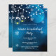 An evening and blue night with a full moon and a light string. A party invitation perfect for a winter party/birthday party or Christmas party with friends, family or coworkers. Templates for date, place, RSVP details.