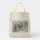 The printing came out very well, better than I had anticipated. The natural color fabric is sturdy with strong seams and comfortable handles. This tote fits easily over my shoulder. As it is filled, the bottom flattens out--very cool! I would buy this product again. This grocery tote holds a lot of groceries! The image quality was very good. The colors were a little darker than I had expected. The darkness may have been due to printing on a natural color fabric rather than on white. The cat design is attractively centered on the tote. The spirit of the design is very lively, just as it appears on the Zazzle website.