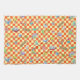 A pattern drawing of budgies in cute manga style with orange checker pattern for the background. Featuring many budgie mutation colors: green, yellow, white, blue, violet and mauve.