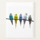 Row of budgie birds on a tree branch