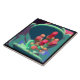 The colorful abstract artwork by ZoeSPEAK on this 6” Ceramic Tile was created from Zoe’s original photograph of an agave plant. The photo view is from overhead, showing the deep pink flower buds against their background of bluish green disc-shaped leaves. The image is surrounded by a black border, for a crisply modern look.