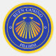 Traditional Scallop or cockle shell motif and Buen Camino Pilgrim text in blue and yellow. For your pilgrimage on the way of St James, with a traditional Scallop shell motif. Easily add your camino text and adjust the curvature if necessary