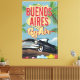 Buenos Aires, Retro style travel poster featuring a classic black car.
