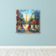 Experience the passionate soul of Buenos Aires through this electrifying impressionist masterpiece that celebrates Argentina's most iconic city in all its vibrant energy and romantic spirit. An elegant golden obelisk rises majestically at the composition's heart, piercing a luminous sky rendered in brilliant turquoises, soft yellows, and cream clouds that swirl with artistic fervor and movement. The iconic plaza pulses with life and sensuality—couples in vintage attire dance the tango with passionate abandon, their bodies swaying in perfect harmony as women in flowing crimson, emerald, and burgundy dresses press against men in sharp tailored suits and fedora hats. Historic colonial buildings in vibrant jewel-tones (deep blues, warm oranges, sunset reds, golden yellows) frame the plaza, their ornate facades glowing with cultural richness and architectural splendor. Lush green foliage provides natural accents while vintage street lamps glow softly, adding nostalgic warmth to this intoxicating tableau. Crowds of elegantly dressed onlookers gather throughout the plaza, their silhouettes creating a human symphony of witnessing and celebration. The artist's passionate, explosive brushwork infuses every element with unbridled emotion and movement: thick impasto strokes create dramatic depth and texture, bold color choices celebrate Argentine passion and pride, and the very composition seems to dance with the rhythm of tango music. Perfect for those who cherish Latin American culture, tango traditions, vintage Buenos Aires aesthetics, passionate urban scenes, and art that captures the authentic spirit of Argentina's most enchanting capital city, this stretched canvas transforms your space into an eternal portal to Buenos Aires' most magical and sensual moments.