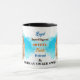 A portrait of a beautiful buff or blonde colored American Cocker Spaniel Dog is the feature on two sides of this mug. Each image is placed on a bright blue splatter background. Between the two images is the text that describes this loyal and playful companion, with "the AMERICAN COCKER SPANIEL" in black at the bottom. All the text is easily customized to anything you'd prefer so that you may describe your own loyal friend.