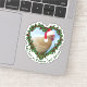 * A little Christmas chicken, Duckie, the Buff Orpington Chicken, wearing a cute Santa Hat in a heart shaped holiday wreath.
