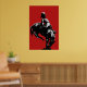 Our striking poster print is based on a statue of Wild West showman Buffalo Bill Cody situated in Dennistoun, Glasgow, Scotland, UK, of all places. Buffalo Bill staged a Wild West show there back in 1891 along with Annie Oakley. Bill and his horse are silhouetted in black and treated with a pale blue wash on a deep red background.