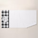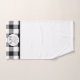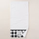 The design features a buffalo check strip with the word bath on it and a picture of towels and soap.