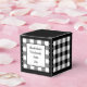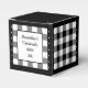 Classic black and white buffalo check favor box. Text on both sides of the box is customizable. If you use the 'edit design' button/tool, you can also add your own images/photos. Other colorways available.