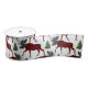 Bull moose in red and black buffalo check tartan. Green pine trees. By Melissa J Barrett.