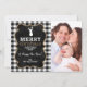 Trendy black and white buffalo check print with gold glitter border. This card also has a faux chalkboard background. A neat Christmas greeting for your friends and family.