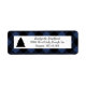 A pattern of black buffalo check plaid and vintage blue feels fresh and modern for the holidays with a solid black Christmas tree graphic and custom return address text.