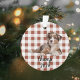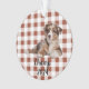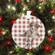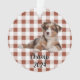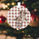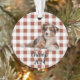 Celebrate your loved ones with this cozy, customizable ornament featuring a classic red and white buffalo check background. Add a favorite photo—whether of your family dog, a cherished pet, or a holiday snapshot of family or friends—and personalize the two lines of text, like "Champ 2024" or your own special message. This rustic, heartwarming ornament is perfect for adding a personal touch to your tree or as a thoughtful gift for friends and family. Capture the warmth of the holiday season with this one-of-a-kind keepsake ornament!
