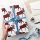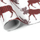 Bull moose wearing black and red tartan strolls across white background. Customize as you wish.