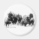The American bison, commonly know as the buffalo, has a massive head and forequarters covered with long, dark brown, woolly hair. Some stand six feet at the shoulder and weigh as much as a ton. An estimated 30 to 75 million bison roamed North America and provided critical meat, hides, and other materials to Native Americans. Wanton slaughter after the Civil War nearly exterminated the species in the United States, but small herds have been established in many areas from remnant populations that found refuge in Yellowstone National Park and Canada.