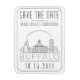 A rounded deco style magnetic save the date invitation for a marriage taking place in the beautiful city of Buffalo, New York. This invitation features a stylized illustration of the city's unique skyline with its name underneath. This is followed by your wedding day information in a matching open lined style. Being that it works as a small refrigerator magnet It is a great way to remind and excite your guests of their future trip to your city wedding destination. All individual elements of the invite are unlocked so feel free to change any details necessary such as font sizes, styles and more by using the customization function. Enjoy being creative!
