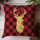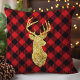 Buffalo Plaid and Gold Deer Christmas Throw Pillow
