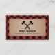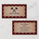 A business card featuring axes on front and buffalo plaid background on front and back with black text. Personalize the text on front and back with your name and contact information.