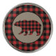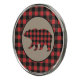 The background on these golf ball markers is a red and black buffalo plaid pattern. At the center is a tan circle banner with a matching red and black plaid silhouette bear image. Be sure to see the matching golf products in our store.
