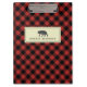 A clipboard featuring an illustration of a black bear with a red and black buffalo plaid design. Personalize the text.