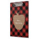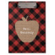 A clipboard for teachers featuring an illustration of a burlap apple over a red and black heritage (buffalo) plaid background. Personalize the name.