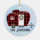 This adorable ornament features a cozy camper with a classic buffalo plaid exterior, evoking feelings of warmth and togetherness. The camper is festively decorated with a wreath and string lights, symbolizing the heartwarming moments of family gatherings during the holiday season. At the bottom of the ornament, there's a customizable area where you can proudly display your family name, making it truly your own.