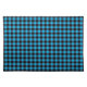This cloth placemat is shown in a lovely black and blue buffalo plaid print.