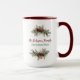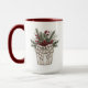 Pine cones and pine branches in a Buffalo Plaid basket, Whimsical country farmhouse Christmas coffee mug.