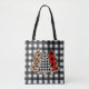 Red, black and white checkered flannel pattern Christmas trees with bow tote bag.