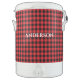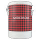 Igloo Beverage Cooler with a red and black plaid, buffalo plaid background and a cutomizable name in a white font. Customizable name appears on both sides. Never loose a cooler at a gathering again with this personalized cooler! Get ready for outdoor gatherings this spring and summer - family reunions, gradautions, mother's day and father's day celebrations, 4th of July, any holiday or anywhere friends and family gather.