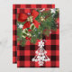This front Christmas design features a wreath with white Christmas tree shape ornament with party template text on the back red and black buffalo plaid as a background. Personalize or remove the template text or click customize to select a font style, size, and color you prefer.