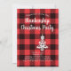 This front Christmas design features a wreath with white Christmas tree shape ornament with party template text on the back red and black buffalo plaid as a background. Personalize or remove the template text or click customize to select a font style, size, and color you prefer.