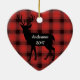 Buffalo Plaid Deer Design Ornament with customizable text on both sides and customizable background color in the plaid design.