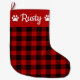 Buffalo Plaid Dog Name and Paws Large Christmas Stocking