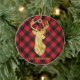 Buffalo Plaid Gold Deer Monogram Christmas Ceramic Ornament