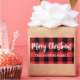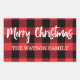 Buffalo plaid background with custom wishes in handwritten script font with family monogram in serif font on the bottom