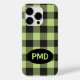 Enjoy the ever popular Buffalo Plaid check design in a new color combination of lime green and black on your cell phone with your monogram initials. Easy to customize to add a word or name instead of the monogram. This cell case is available in other colors.