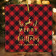 Buffalo Plaid Merry Christmas Monogram Metal Ornament