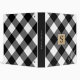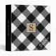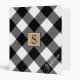 Buffalo Plaid Monogram Script Name Black White 3 Ring Binder
