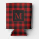 Rustic masculine can cooler, done in the classic red and black buffalo plaid pattern. Personalize the bold red one letter monogram, to suit your needs. Great gift idea.