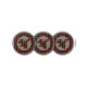 The background on these golf ball markers is a red and black buffalo plaid pattern. At the center is a tan circle banner with a matching red and black plaid silhouette moose image. Be sure to see the matching golf products in our store.