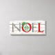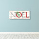 Add a little rustic farmhouse charm to your holiday home this season with this black and white Buffalo check NOEL art canvas that has a background of white-washed woodgrain look wood slats or shiplap with plaid letters for the N and E with the letters O and L in red. There is also a hanging green ornament inside the letter O with a small evergreen and pinecone spray on the upper left side of the letter O.