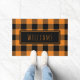 Buffalo Plaid Orange and Black Custom Name Doormat