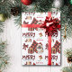 The repeated pattern on this cute Christmas wrapping paper is an image of a Pekingese dog wearing a red and white Santa Claus hat. There is a black and red buffalo plaid pillow behind him, and a coordinating gift package with a gold ribbon beside him. There's also a buffalo plaid bow, a gold bell, and text that says "JOY". Stylized red and black buffalo plaid text says MERRY CHRISTMAS", and your own signature is in two fields for you to customize. Be sure to see the other Pekingese images and products, as well as dozens of other dog breed products, at Dog Village.