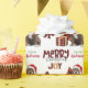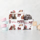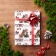 The repeated pattern on this cute Christmas wrapping paper is an image of a brown and white Pit Bull Dog wearing a red and white Santa hat, with a black and red buffalo plaid pillow behind him, and a coordinating gift package with a gold ribbon beside him. There's also a buffalo plaid bow and the matching text that says "JOY". Stylized red and black buffalo plaid text says MERRY CHRISTMAS", and your own signature is in two fields for you to customize.